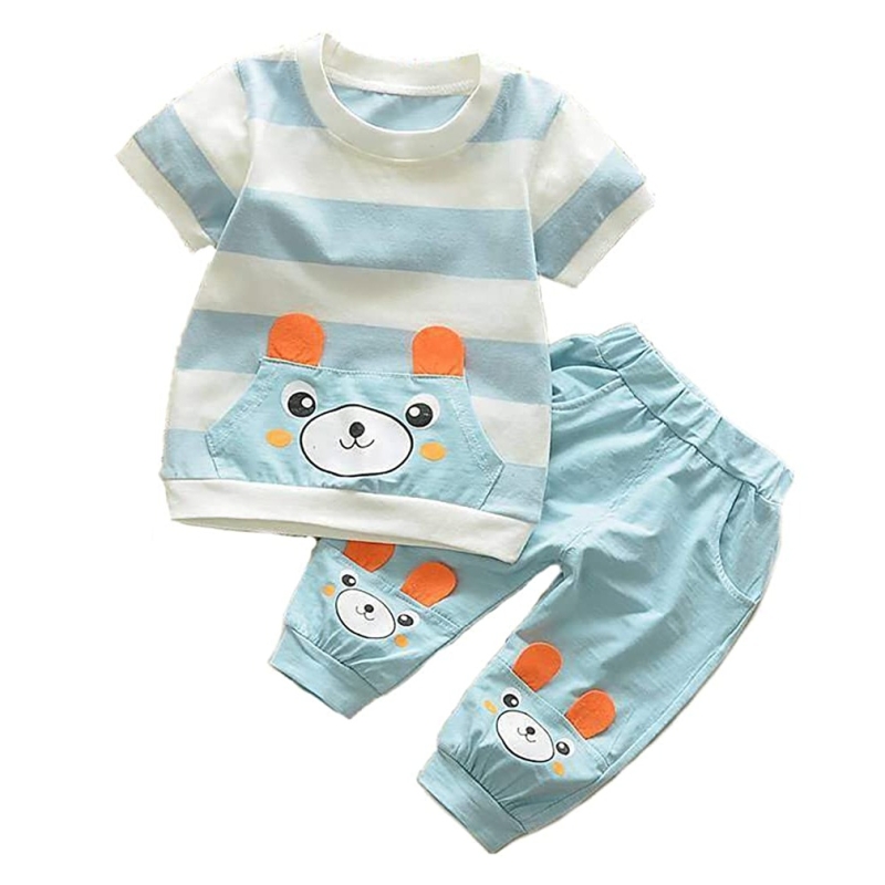 جريئة N أنيقة الاطفال الكرتون شريط طباعة القطن نصف كم تي شيرت والسراويل