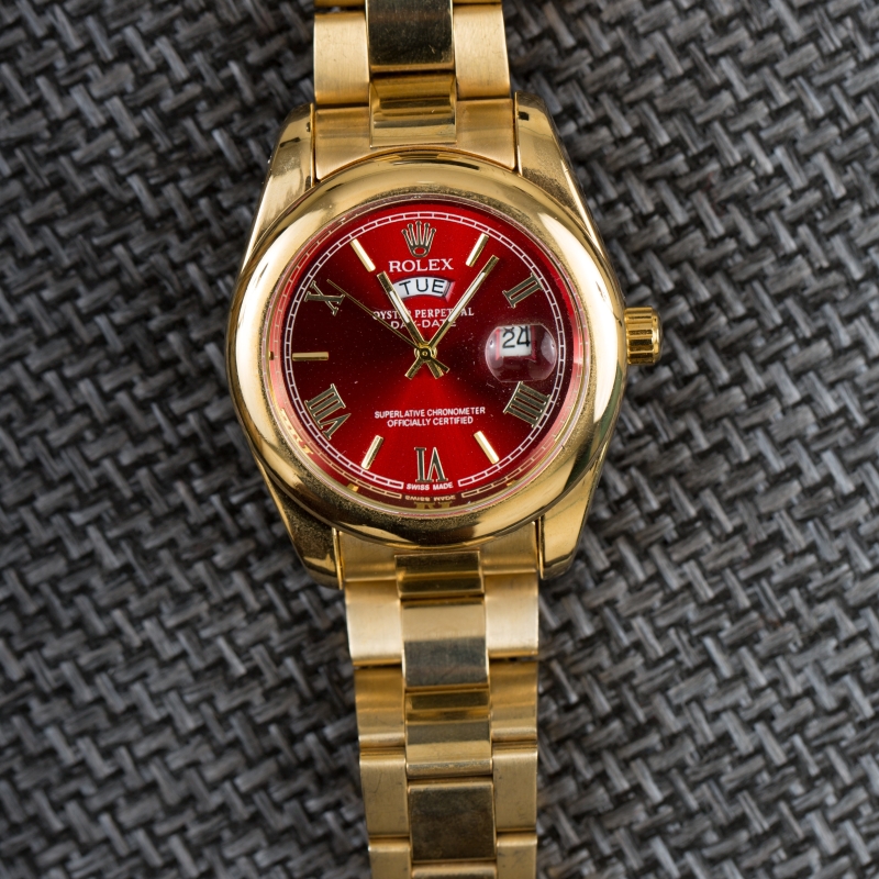 ltr style= line-height:1.38;margin-top:0pt;margin-bottom:0pt;>font-size: 11pt; font-family: Arial; font-variant-numeric: normal; font-variant-east-asian: normal; vertical-align: baseline; white-space: pre-wrap;>هذا الحذاء من أويستر بربتشوال داي-ديت 40 من الذهب الأصفر عيار 18 قيراطا مع ميناء أحمر وإطار مخدد وسوار رئيس.