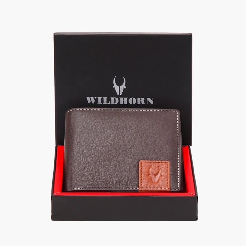 الرجال البني الصلبة RFID الجلود المحمية اثنين من أضعاف محفظة
