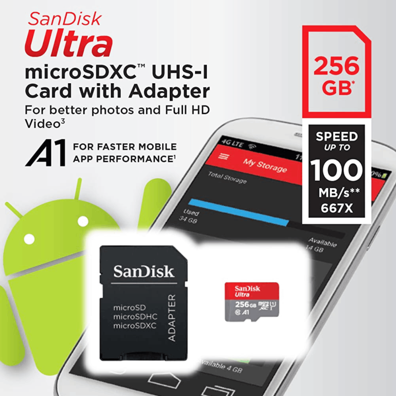 بطاقة الذاكرة سانديسك ميكرو إس دي إكستريم برو سعة ٢٥٦ جيجابايت