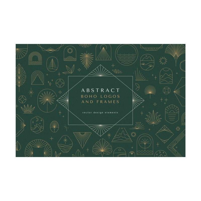 Bohemian logos - a new set of vector design elements and templates. Abstract logos and branding elements in trendy linear minimal style, emblems, and badges for design studios, shops, female businesses, and handcrafted products.