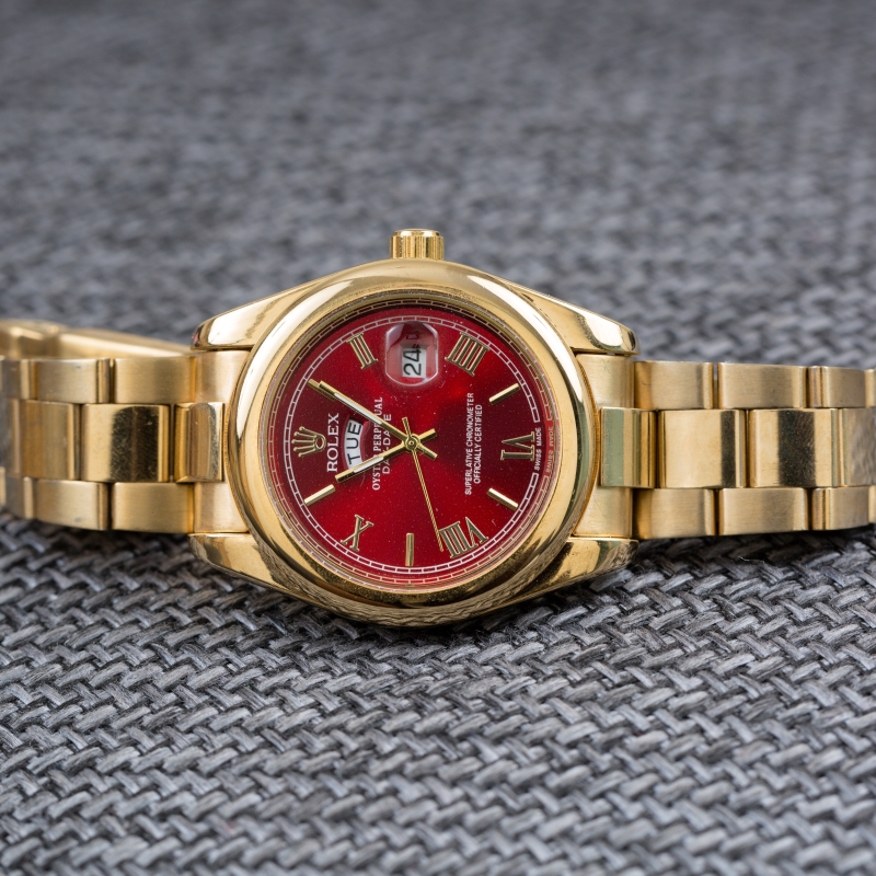 ltr style= line-height:1.38;margin-top:0pt;margin-bottom:0pt;>font-size: 11pt; font-family: Arial; font-variant-numeric: normal; font-variant-east-asian: normal; vertical-align: baseline; white-space: pre-wrap;>هذا الحذاء من أويستر بربتشوال داي-ديت 40 من الذهب الأصفر عيار 18 قيراطا مع ميناء أحمر وإطار مخدد وسوار رئيس.