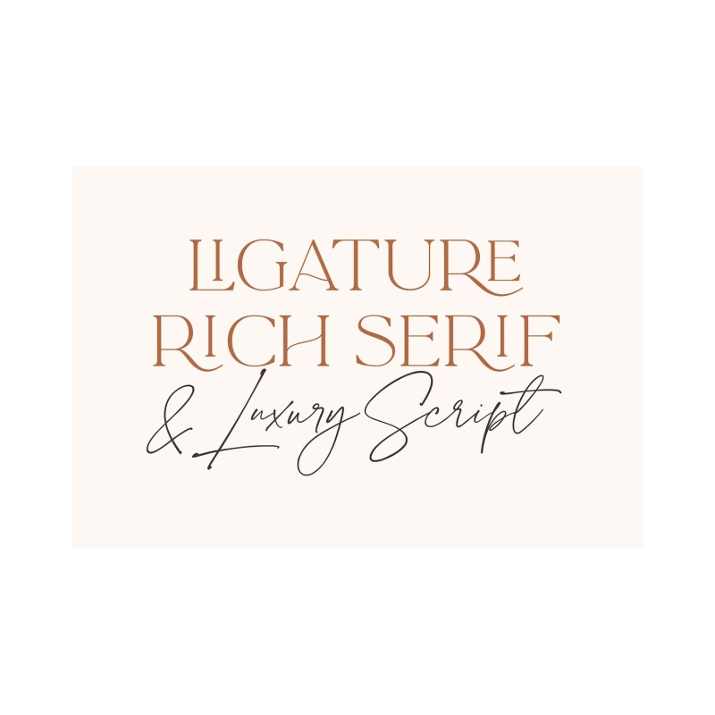 • La Luxes Serif • حرف أنيق وعصري يحتوي على أحرف كبيرة وأحرف صغيرة جديدة ، وجميع علامات الترقيم والأرقام. يحتوي أيضا على 38 حرفا مركبا و 11 حرفا خاصا مما يمنحك مجموعة متنوعة من خيارات التخطيط.