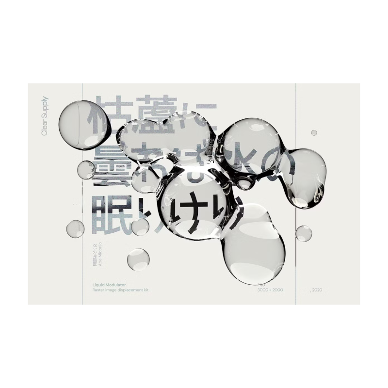 Liquid Modulator is a collection of 60 unique high-resolution renders with an alpha channel. You can use them to bring dynamics to your designs by simply displacing your image in Photoshop and overlaying a render over it. At 3000 × 2000 px, the collection is suitable for both screen and print. For unique compositions, combine your elements in the collection. The package contains 60 renders (PSD, PNG) + 60 previews (JPG).