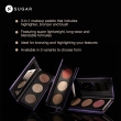 Each of the 3 powders in the SUGAR Contour De Force Face Palette has excellent shading, blends effortlessly with intense color, and lasts for hours without flaking or caking.